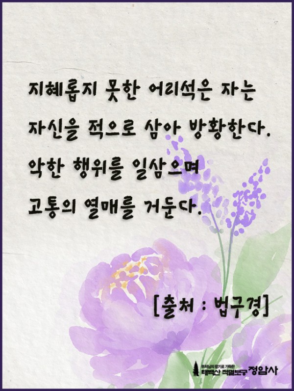 _()_ 붓다의 말씀 2023년 3월 - 지혜롭지 못한 어리석은 자 페이지 정보 작성자 정암사 작성일23-02-24 13:57 조회6,895회 댓글0건 본문 . 댓글목록 등록된 댓글이 없습니다. 이전글 다음글 목록