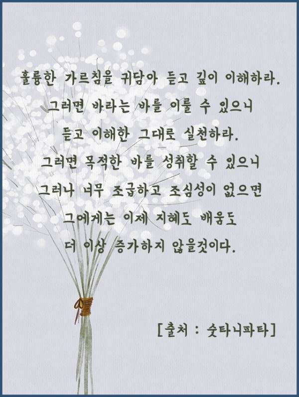 _()_ 붓다의 말씀 2020년 10월 - 훌륭한 가르침을 귀담아 듣고 깊이 이해하라 페이지 정보 작성자 정암사 작성일20-09-26 22:10 조회9,931회 댓글0건 본문 . 댓글목록 등록된 댓글이 없습니다. 이전글 다음글 목록