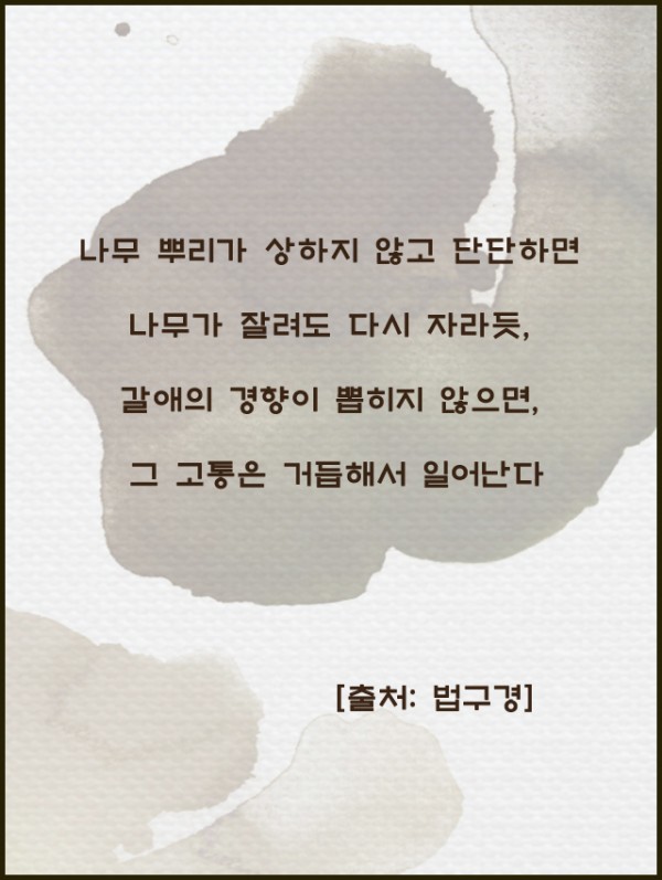 _()_ 붓다의 말씀 2018年 11月 - 나무 뿌리가 상하지 않고 단단하면 페이지 정보 작성자 정암사 작성일18-10-29 14:01 조회10,094회 댓글0건 본문 댓글목록 등록된 댓글이 없습니다. 이전글 다음글 목록
