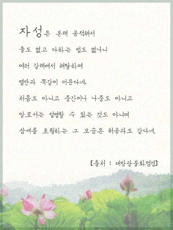 _()_ 붓다의 말씀 2017년 4월 - 자성은 본래 공적해서 둘도 없고 다하는 법도 없나니 페이지 정보 작성자 정암사 작성일17-03-31 10:24 조회11,711회 댓글0건 본문 댓글목록 등록된 댓글이 없습니다. 이전글 다음글 목록