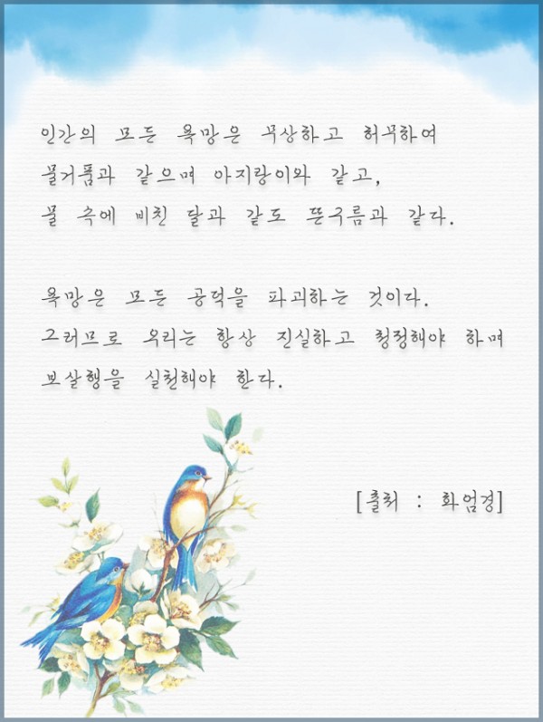 _()_ 붓다의 말씀 2017년 6월 - 인간의 모든 욕망은 무상하고 허무하며 페이지 정보 작성자 정암사 작성일17-05-30 21:54 조회11,311회 댓글0건 본문 댓글목록 등록된 댓글이 없습니다. 이전글 다음글 목록
