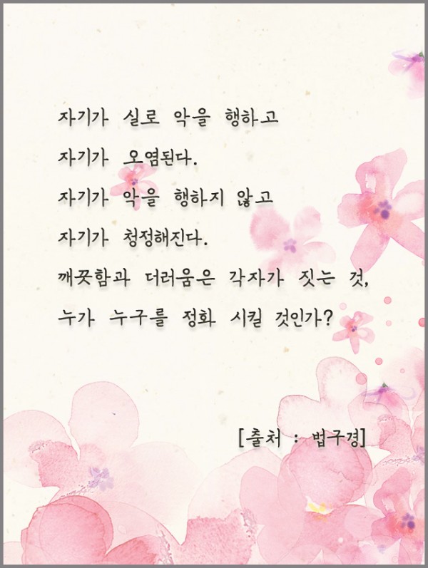 _()_ 붓다의 말씀 2018年 4月 - 자기가 실로 악을 행하고 자기가 오염된다 페이지 정보 작성자 정암사 작성일18-03-27 14:10 조회9,864회 댓글0건 본문 댓글목록 등록된 댓글이 없습니다. 이전글 다음글 목록
