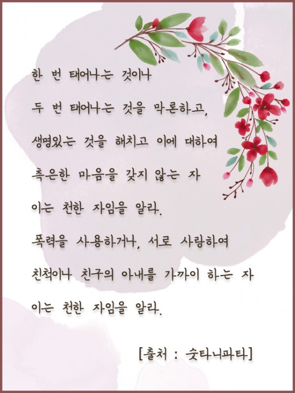 _()_ 붓다의 말씀 2019년 12월 - 한 번 태어나는 것이나 두 번 태어나는 것을 막론하고 페이지 정보 작성자 정암사 작성일19-11-27 16:20 조회10,568회 댓글0건 본문 댓글목록 등록된 댓글이 없습니다. 이전글 다음글 목록