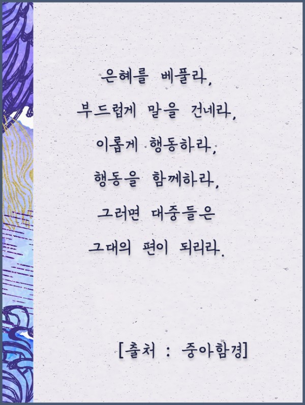 _()_ 붓다의 말씀 2020년 2월 - 은혜를 베풀라, 부드럽게 말을 건네라 페이지 정보 작성자 정암사 작성일20-01-29 13:45 조회10,489회 댓글0건 본문 댓글목록 등록된 댓글이 없습니다. 이전글 다음글 목록