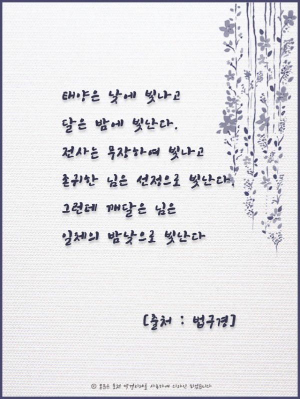 _()_ 붓다의 말씀 2019년 1월 - 태양은 낮에 빛나고 달은 밤에 빛난다 페이지 정보 작성자 정암사 작성일18-12-27 13:45 조회10,905회 댓글0건 본문 댓글목록 등록된 댓글이 없습니다. 이전글 다음글 목록