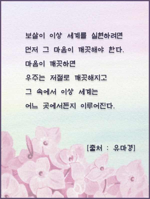 _()_ 붓다의 말씀 2019년 4월 - 보살이 이상 세계를 실현하려면 먼저 그 마음이 깨끗해야 한다 페이지 정보 작성자 정암사 작성일19-03-27 14:26 조회10,603회 댓글0건 본문 댓글목록 등록된 댓글이 없습니다. 이전글 다음글 목록