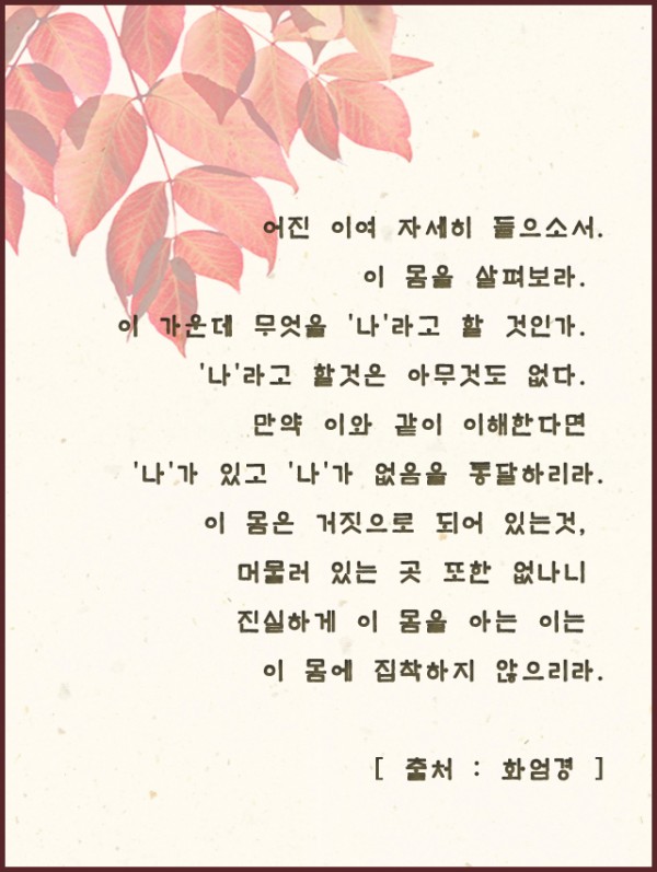 _()_ 붓다의 말씀 2017년 10월 - 어진 이여 자세히 들으소서 페이지 정보 작성자 정암사 작성일17-09-29 16:12 조회10,932회 댓글1건 본문 댓글목록 등록된 댓글이 없습니다. 이전글 다음글 목록