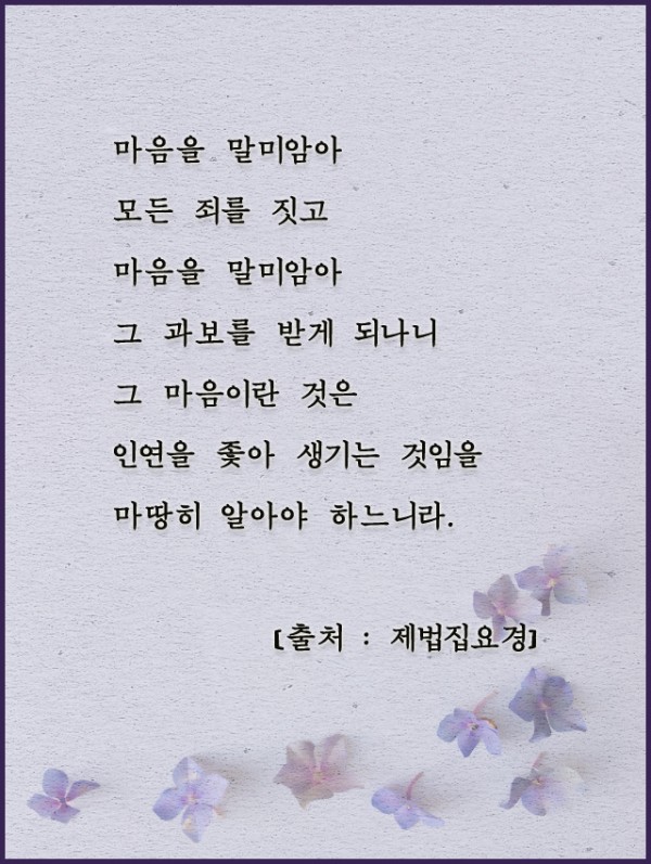 _()_ 붓다의 말씀 2018年 3月 - 마음을 말미암아 모든 죄를 짓고 페이지 정보 작성자 정암사 작성일18-02-27 10:49 조회10,777회 댓글0건 본문 댓글목록 등록된 댓글이 없습니다. 이전글 다음글 목록