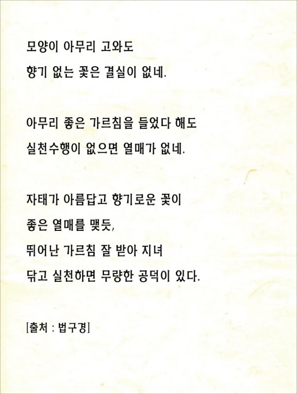 _()_ 붓다의 말씀 2016년 9월 - 모양이 아무리 고와도...... 페이지 정보 작성자 정암사 작성일16-08-31 17:05 조회11,418회 댓글0건 본문 . 댓글목록 등록된 댓글이 없습니다. 이전글 다음글 목록