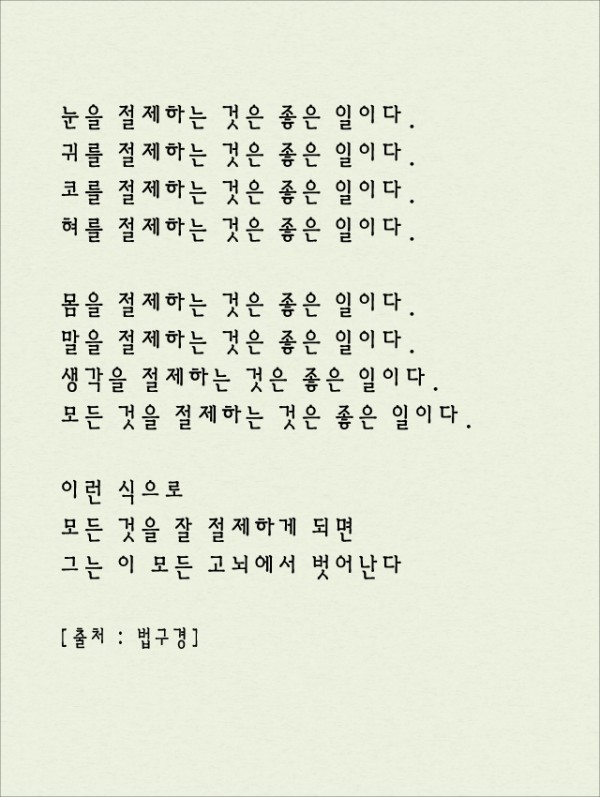 _()_ 붓다의 말씀 2016년 3월 - 절제하는 것은 좋은 일이다 페이지 정보 작성자 정암사 작성일16-03-02 10:18 조회14,592회 댓글0건 본문 . 댓글목록 등록된 댓글이 없습니다. 이전글 다음글 목록