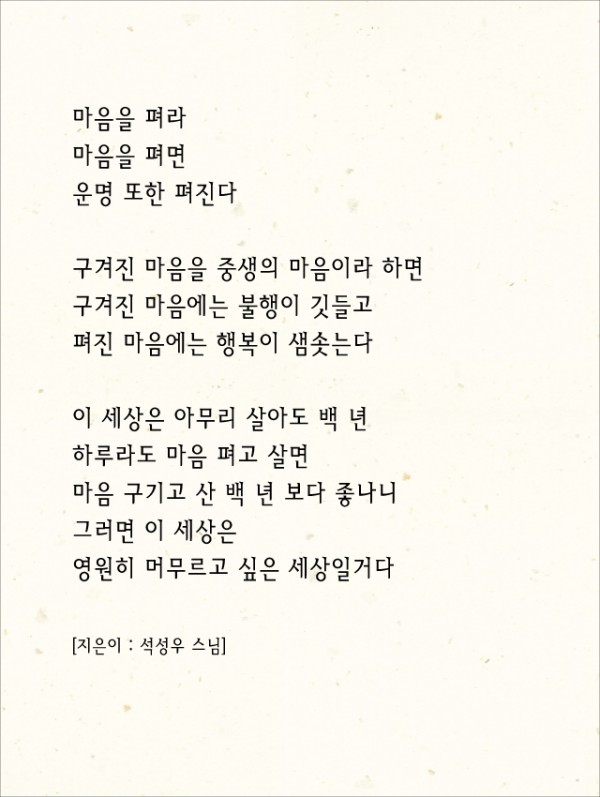 _()_ 붓다의 말씀 2015년 12월 - 마음을 펴라 페이지 정보 작성자 정암사 작성일15-12-02 08:17 조회13,814회 댓글0건 본문 . 댓글목록 등록된 댓글이 없습니다. 이전글 다음글 목록