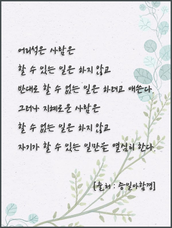 _()_ 붓다의 말씀 2021년 11월 - 어리석은 사람은 할 수 있는 일은 하지 않고 페이지 정보 작성자 정암사 작성일21-10-29 15:51 조회9,340회 댓글0건 본문 . 댓글목록 등록된 댓글이 없습니다. 이전글 다음글 목록