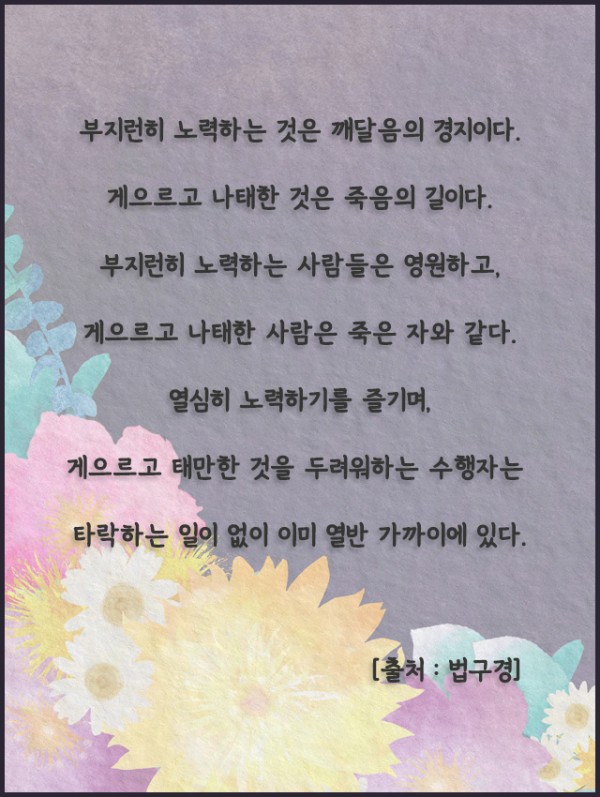 _()_ 붓다의 말씀 2022년 4월 - 부지런히 노력하는 것은 깨달음의 경지이다 페이지 정보 작성자 정암사 작성일22-03-29 19:25 조회8,606회 댓글0건 본문 . 댓글목록 등록된 댓글이 없습니다. 이전글 다음글 목록