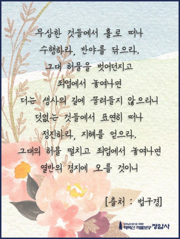 _()_ 붓다의 말씀 2022년 10월 - 무상한 것들에서 홀로 떠나 수행하라 페이지 정보 작성자 정암사 작성일22-09-29 11:26 조회7,315회 댓글0건 본문 . 댓글목록 등록된 댓글이 없습니다. 이전글 다음글 목록
