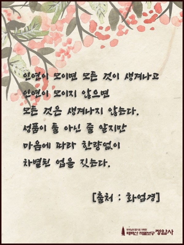 _()_ 붓다의 말씀 2022년 11월 - 인연이 모이면 모든 것이 생겨나고 페이지 정보 작성자 정암사 작성일22-10-27 16:18 조회7,010회 댓글0건 본문 . 댓글목록 등록된 댓글이 없습니다. 이전글 다음글 목록