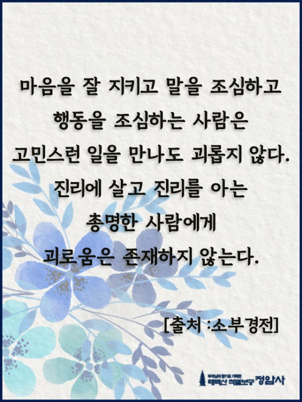 _()_ 붓다의 말씀 2024년 6월 - 마음을 잘 지키고 말을 조심하고 페이지 정보 작성자 정암사 작성일24-06-01 16:44 조회6,945회 댓글0건 본문 . 댓글목록 등록된 댓글이 없습니다. 이전글 다음글 목록